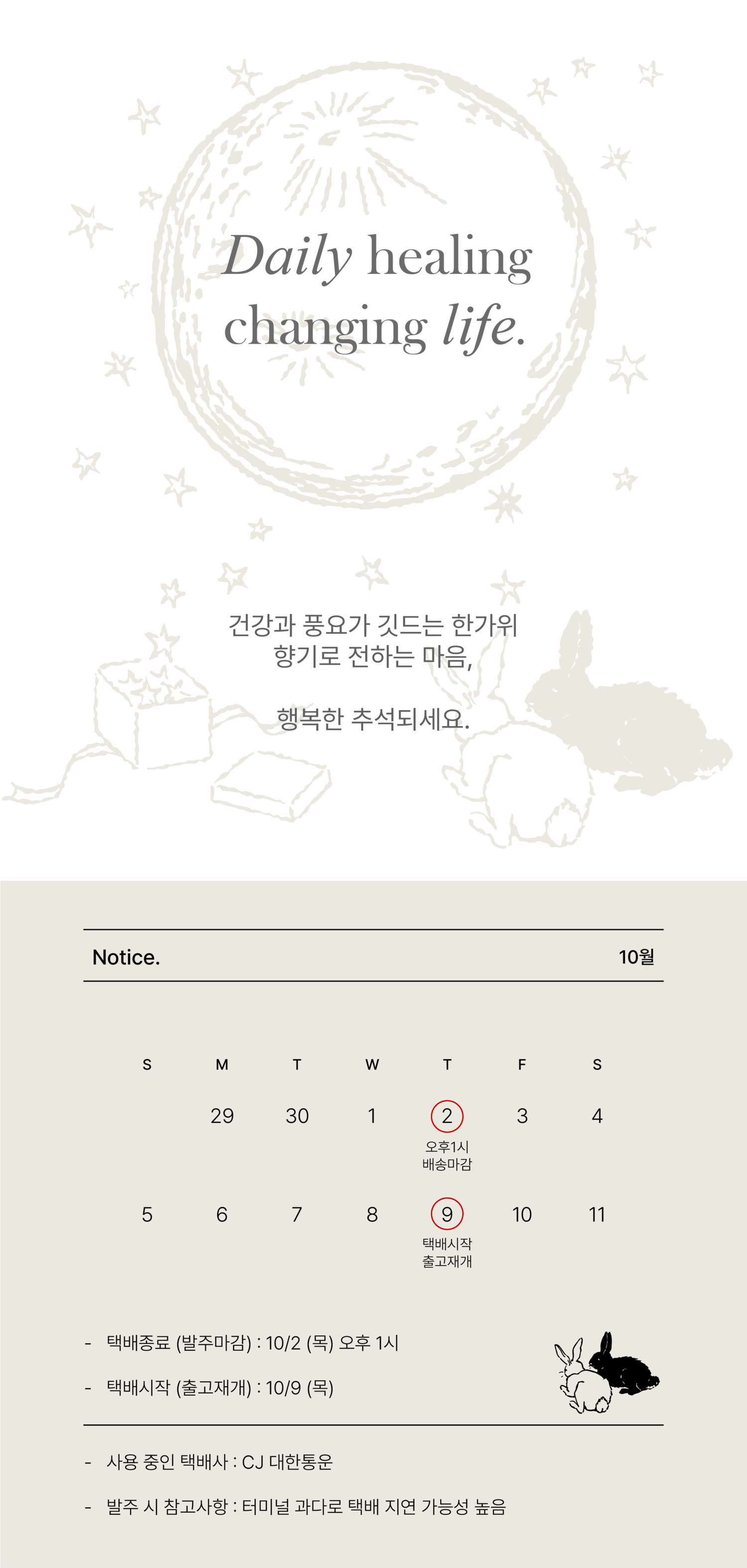 - 모든 배송은 택배사 사정으로 지연될 수 있습니다.